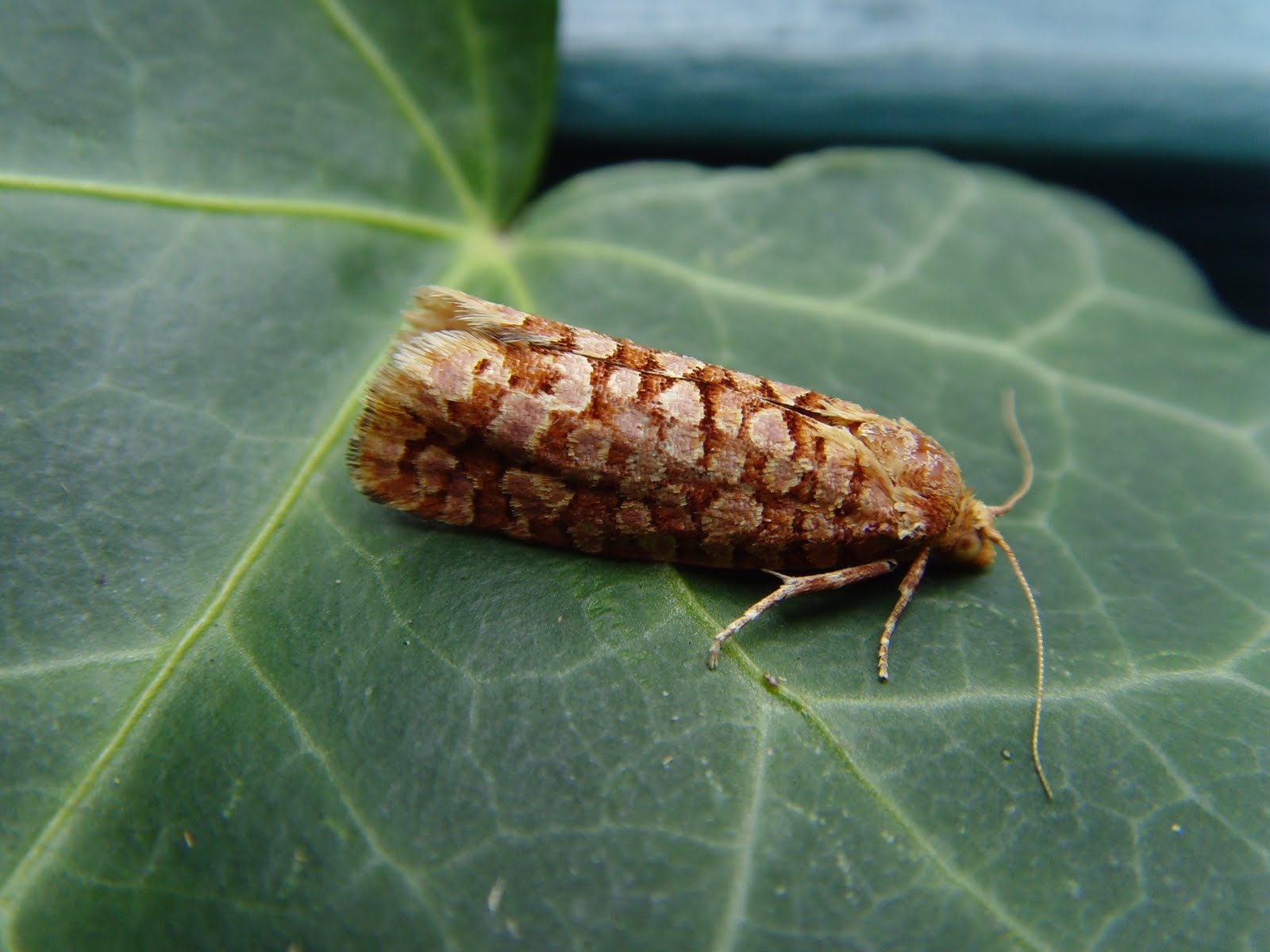 Caloptilia hauderi - Only the second record in Kent that I am aware of although it's undoubtedly under-recorded. This from ukmoths: "A very local species, occurring in a small number of localities in the south. It is known from the Isle of Wight, and West Sussex. Elsewhere it is found in the Pyrenees of southern France and from Austria where it was first named.The adult moth is fairly distinctive, having a rectangular yellowish blotch against the forewing ground colour of brown or chestnut, and occasional smaller yellow markings."